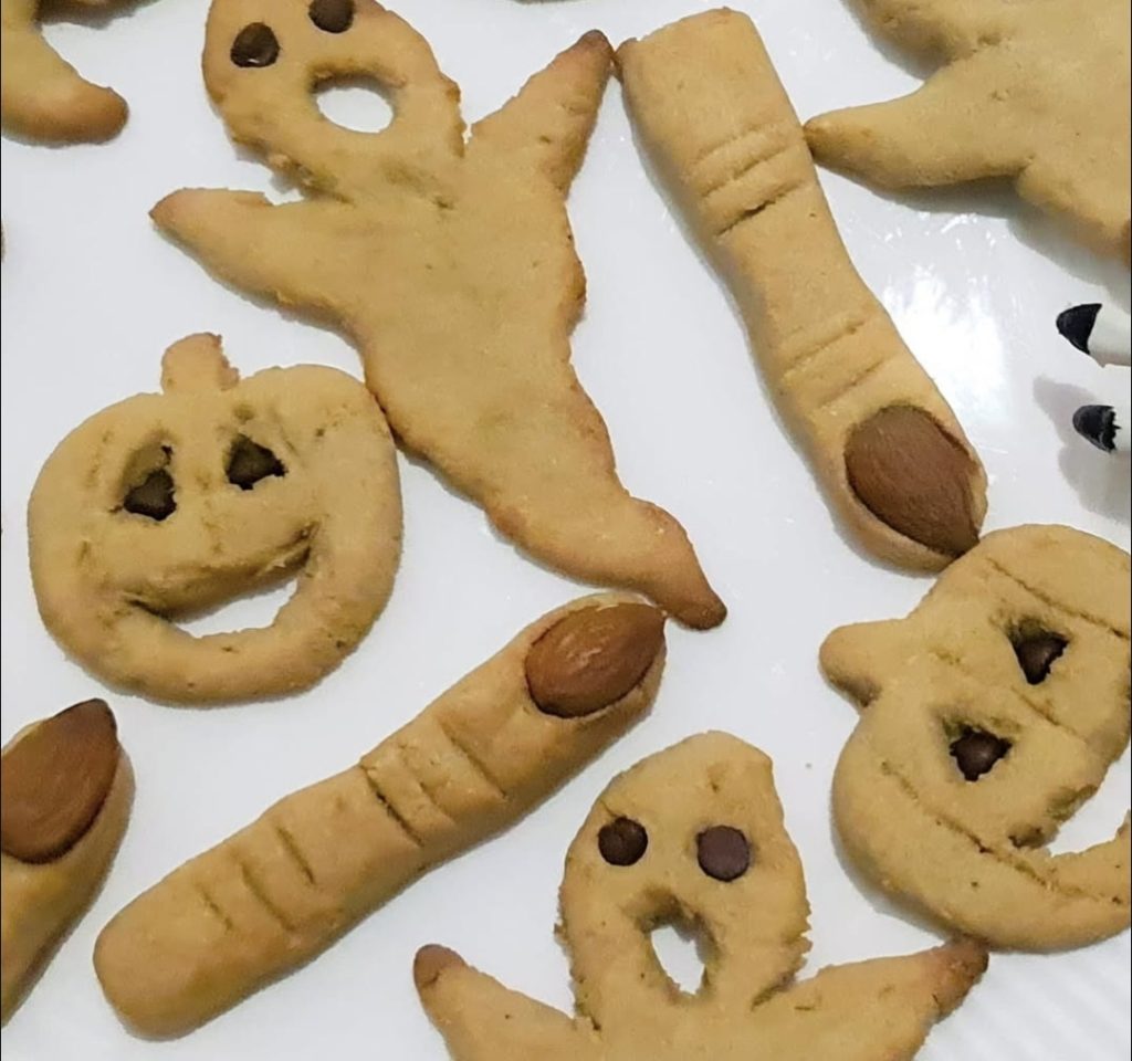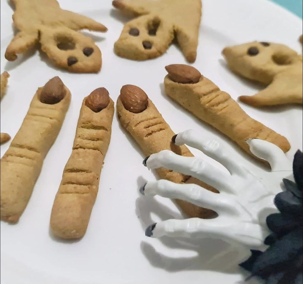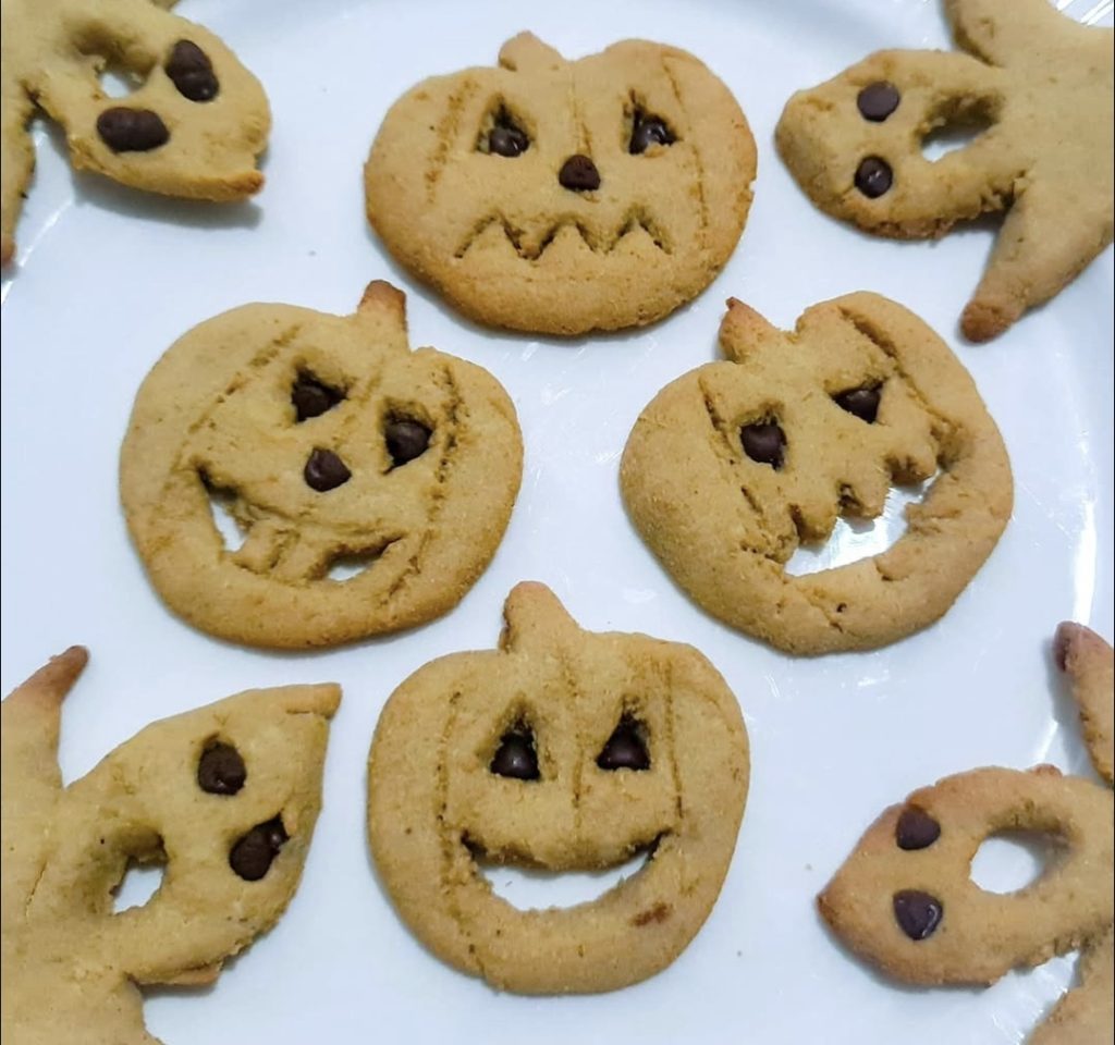 Hoje temos: Dedos de Bruxa, Fantasminhas e Abóboras Encantadas 🦇🦇🦇 Andei a preparar esta receita deliciosa que dá para bolachas e biscoitos, com o meu filho, para o Halloween🕷