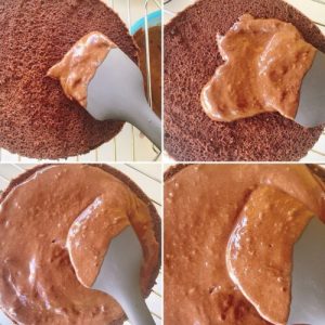 Cortar o bolo ao meio, na horizontal e deixar arrefecer.