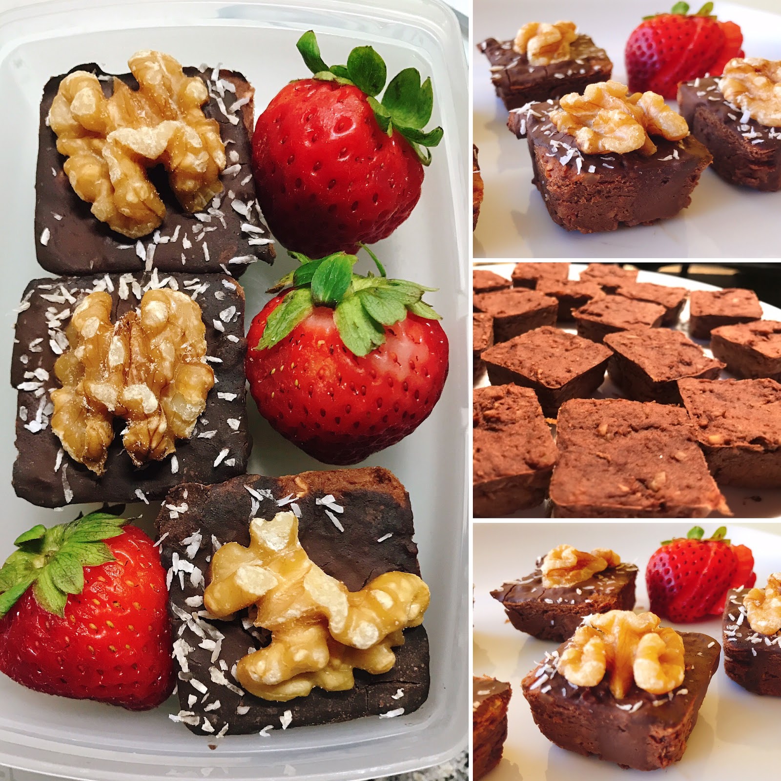 Derreter o chocolate com o óleo de coco e o leite de amêndoa e cobrir os brownies.