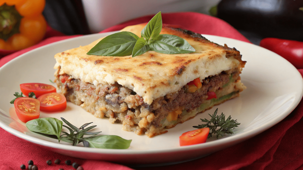 A palavra “moussaka” vem do árabe “musaqqa‘a”, que significa “frio” ou “refrescado”, remetendo à tradição de servir o prato à temperatura ambiente em algumas culturas. Muito popular na Grécia e no Médio Oriente, a moussaka tradicional é feita com carne picada, molho bolonhês e béchamel.