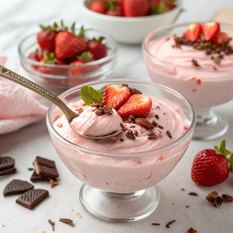 Esta mousse de morango low carb é a definição de leveza e frescura! Feita apenas com três ingredientes principais – morangos frescos, claras em castelo e um pouco de xilitol – é uma sobremesa que combina o sabor doce e vibrante dos morangos com a textura fofa das claras batidas. Finalizada com morangos inteiros e raspas de chocolate, é uma opção elegante para um lanche ou para impressionar os convidados numa ocasião especial.
