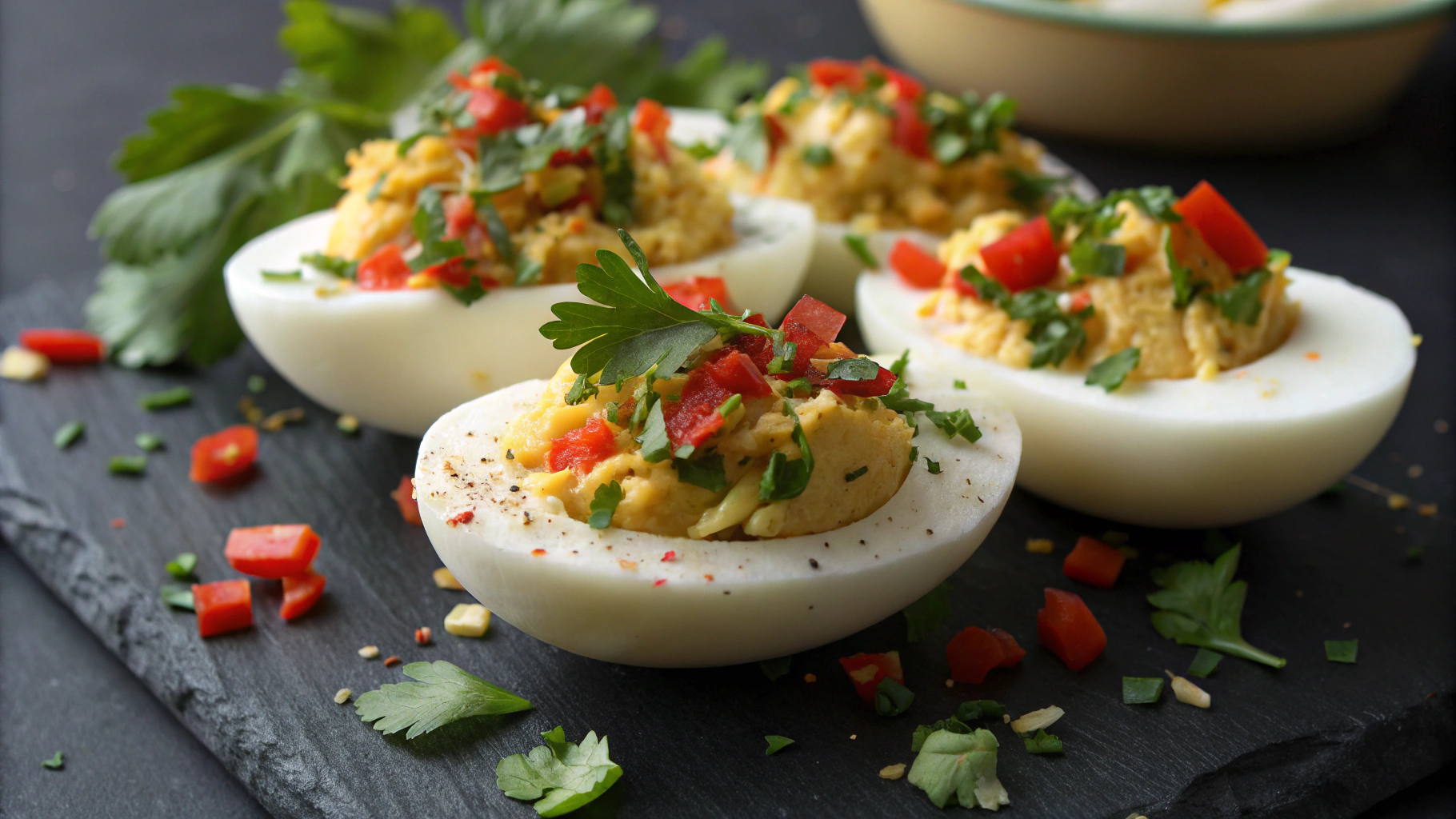 Triture as gemas com o abacate ou a maionese. Envolva os restantes ingredientes e com a mistura obtida recheei o espaço onde estavam as gemas. Leve ao frigorífico 10/15 minutos e sirva