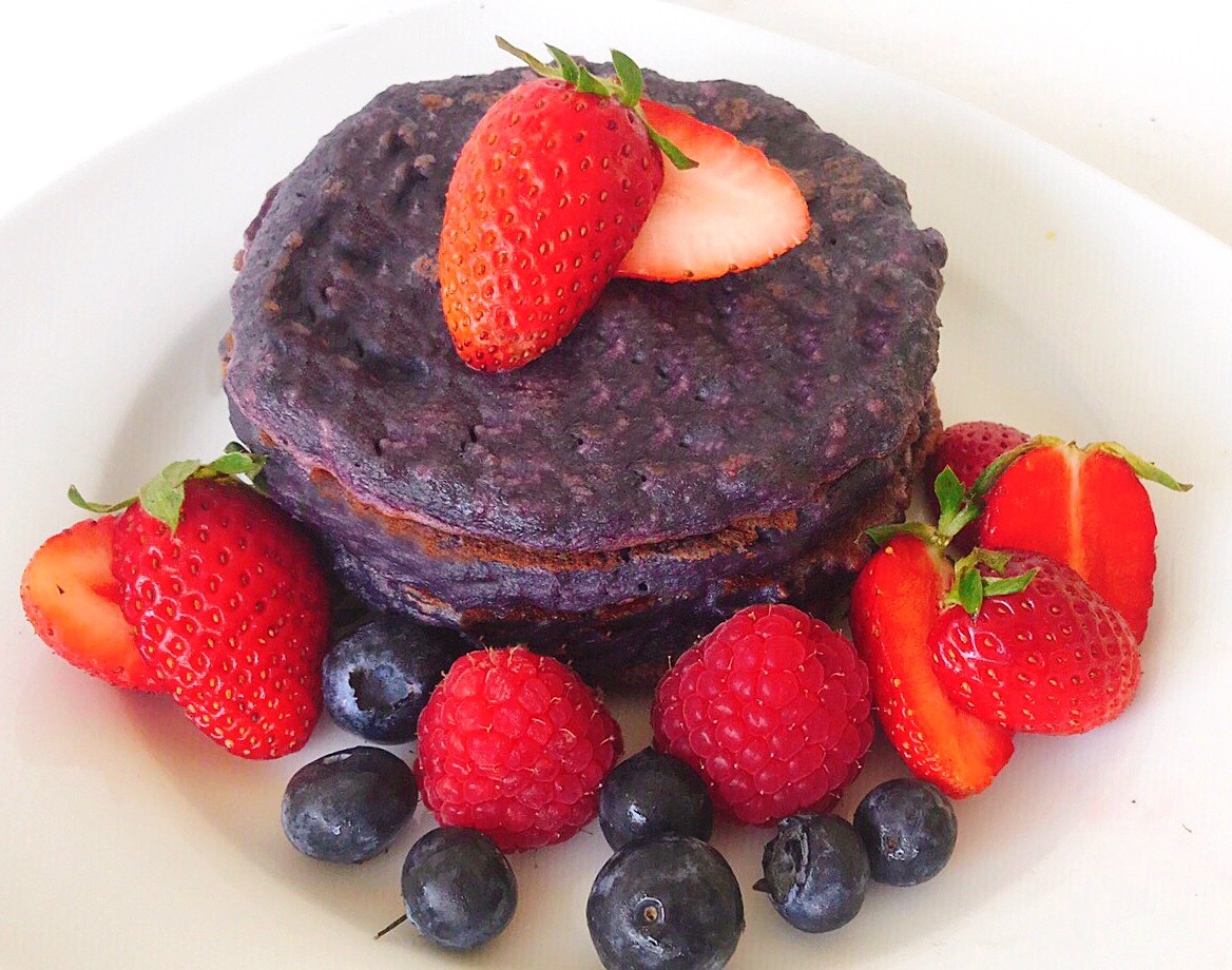 Adoro panquecas de batata doce, mas nunca tinha feito com batata doce roxa e como tem um sabor ligeiramente diferente, receei que não ficassem muito boas. Estava enganada, o resultado final bateu tudo o que estava à espera, são DELICIOSAS! Não só ficaram super fofas como têm uma cor muito gira 🙂