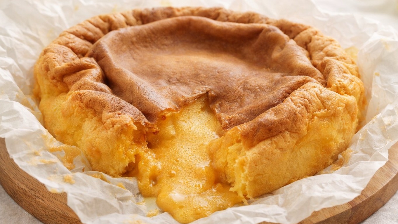 Depois, peneire as farinhas e, junto com os restantes ingredientes, envolva muito bem na mistura dos ovos. Em seguida, forre uma forma redonda com papel vegetal, verta o preparado e leve ao forno, pré-aquecido a 200º, durante 10 minutos. O centro não irá cozer praticamente e ficará em creme.